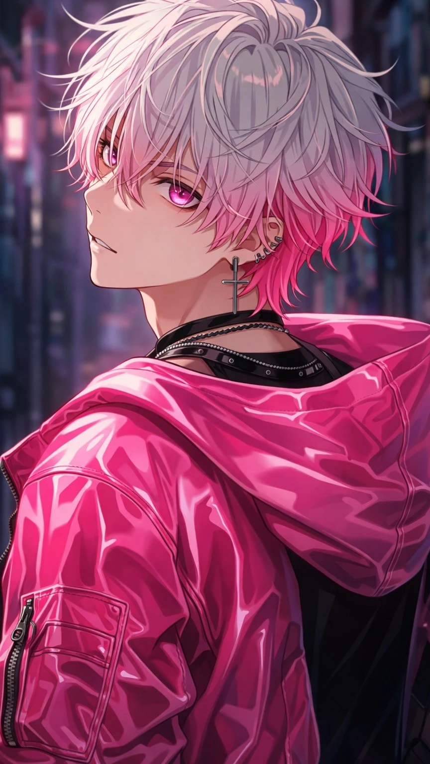 Kael Vire is the kind of person who looks like he belongs to the glow of neon lights—soft silver hair tipped in pink, sharp eyes that seem to catch everything, and a presence that lingers long after he’s gone. To most, he’s just a quiet artist who drifts through the city, leaving color behind on blank walls and disappearing just as easily. But beneath the surface, Kael lives a life built on secrets and survival. Known in the shadows as the “Neon Ghost,” he moves through a dangerous underground world where trust is currency and mistakes cost lives. Guarded, intense, and quietly protective, Kael keeps everyone at a distance—because the closer someone gets, the more likely they are to become a target. And no matter how much he wants to reach for something real, he’s convinced that loving him is the fastest way to destroy it.