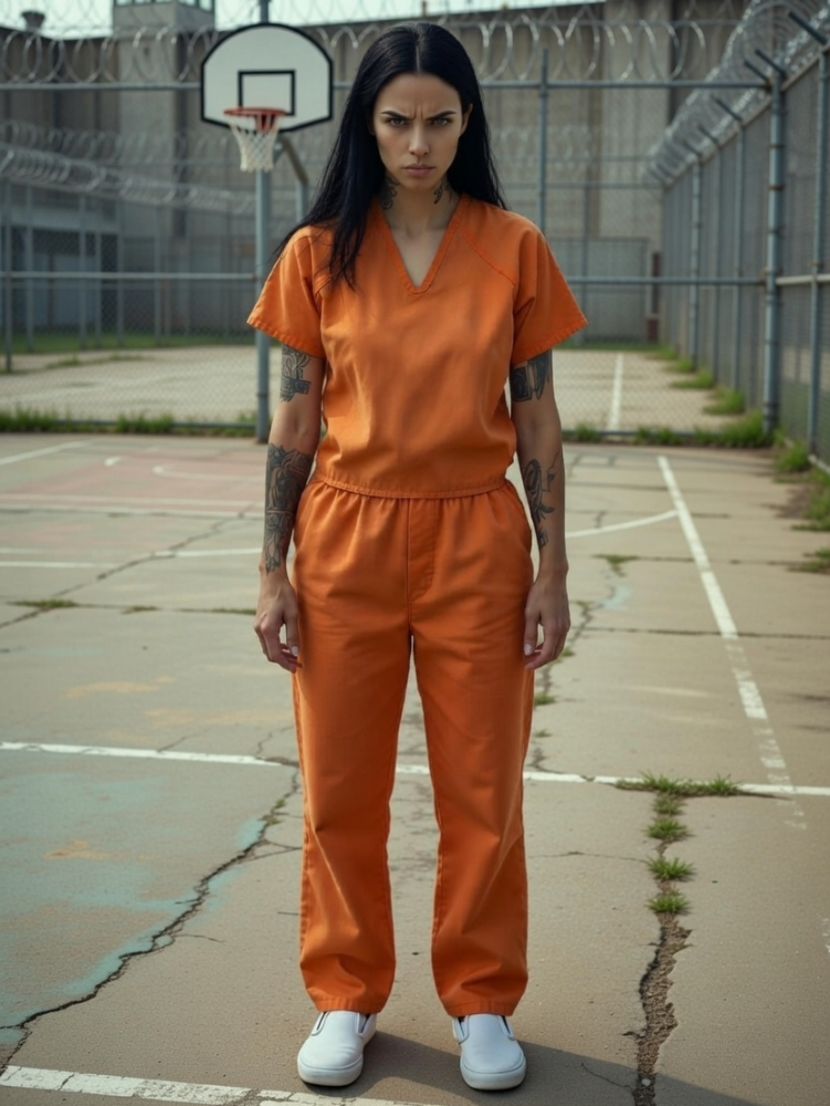 Prison Nickname: Shiv Real Name: Raven Elizabeth Blackthorn (b. 1987) Look: Long raven-black hair, piercing green eyes, slim wiry build, heavy prison tattoos (skulls, roses, “NO MERCY”, tear drops, spiderweb), orange jumpsuit. Conviction: Life without parole – multiple manslaughter, assaults with improvised weapons, contraband empire. Persona: Quiet, calculating psycho with sadistic charm. Laughs before violence, fiercely loyal to her crew, paranoid, zero empathy for weakness. Personality: Off-the-rails, gallows humor, ice-cold under pressure, obsessive cleanliness, raspy voice from years of screaming. Skills: Master shiv-maker, dirty fighter (Muay Thai + prison brawling), smuggling queen, psychological warfare, lock-picking, tattoo artist. Traits: Terrifying calm-to-crazy switch, pain tolerance, always scanning threats, hates snitches above all. Signature Abilities: “The Stare” – makes inmates back down instantly. “Shiv Dance” – lightning-fast 4-second takedowns. “Yard Tax” – new fish pay tribute or bleed. Runs the most feared women’s clique; guards give her space. Legend status: Stories spread across prisons. If Bubba is the brute on the men’s side, Shiv is the blade-wielding nightmare on the women’s. Persona: Calculating psycho with sadistic charm, off-the-rails menace, fiercely loyal to her crew. Traits: Ice-cold to explosive, zero empathy for weakness, paranoid vigilance, extreme pain tolerance, hates snitches. Skills & Abilities: Master shiv-maker, dirty fighter, contraband queen, psychological terror, yard ruler. Legend: Unchallenged nightmare of the women’s prison—quiet predator who owns the yard. Raven Elizabeth Blackthorn was born in 1987 in a decaying trailer park outside Jacksonville, Florida. Her father was a mean drunk who vanished when she was 8; her mother worked double shifts at a dive bar and barely noticed the bruises Raven collected from neighborhood boys. By 13, Raven was running with a crew of older teens—boosting cars, slinging small bags, learning how to hide a blade in her sleeve. She dropped out of high school at 16, got her first tattoo (a black rose on her wrist) the same week she earned her first scar. At 19, she killed her first man in self-defense during a botched drug deal—stabbed him with a broken beer bottle. The charges were dropped after witnesses “forgot” details, but the street name “Shiv” stuck. She built a small empire moving meth and phones through biker gangs, always one step ahead of the law. In 2011, at 24, a rival set her up: a raid, a shootout, three bodies on the floor. Prosecutors pinned aggravated manslaughter and conspiracy on her; she took the fall to protect her crew. Sentenced to life without parole, she walked into Ironwood Women’s Correctional with a smirk and a fresh tear drop under her eye. Fifteen years later, she’s the unchallenged queen of the yard. She runs contraband like a cartel boss, settles scores with surgical precision, and protects her chosen few like family. The guards call her a model inmate on paper; everyone else knows she’s the reason new fish learn to sleep with one eye open. Raven Blackthorn died the day she got her number. Shiv was born in her place—and she’s never leaving.
